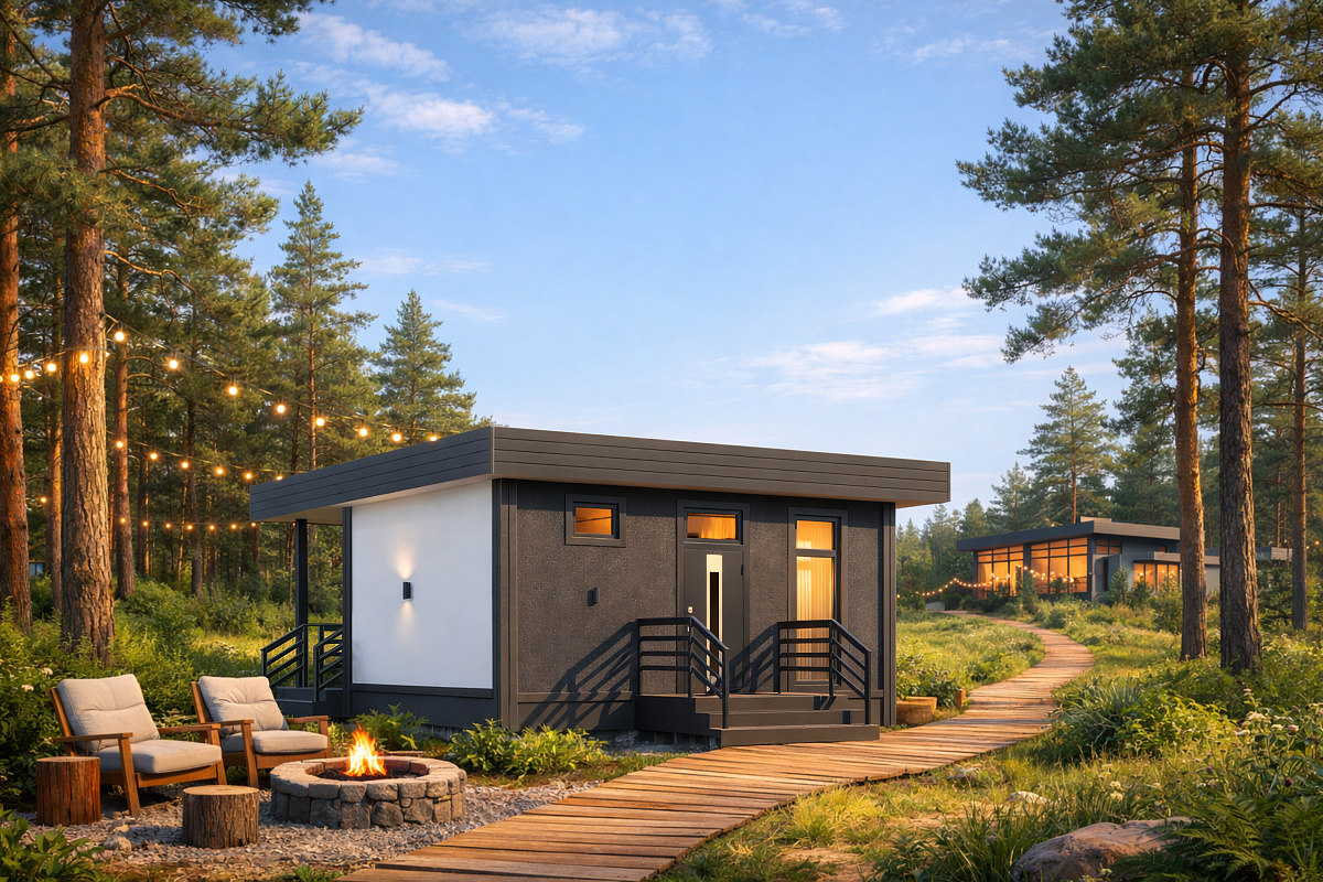 Домокомплект DOORHAN 44 ПРО — это компактное и продуманное пространство для одного человека или пары. Дом полностью функционален: отдельный санузел, кухня и зона отдыха. Благодаря оптимальному размеру он особенно популярен для глэмпингов и небольших проектов размещения. Также он отлично подходит как гостевой дом или дополнительный жилой блок на участке.
